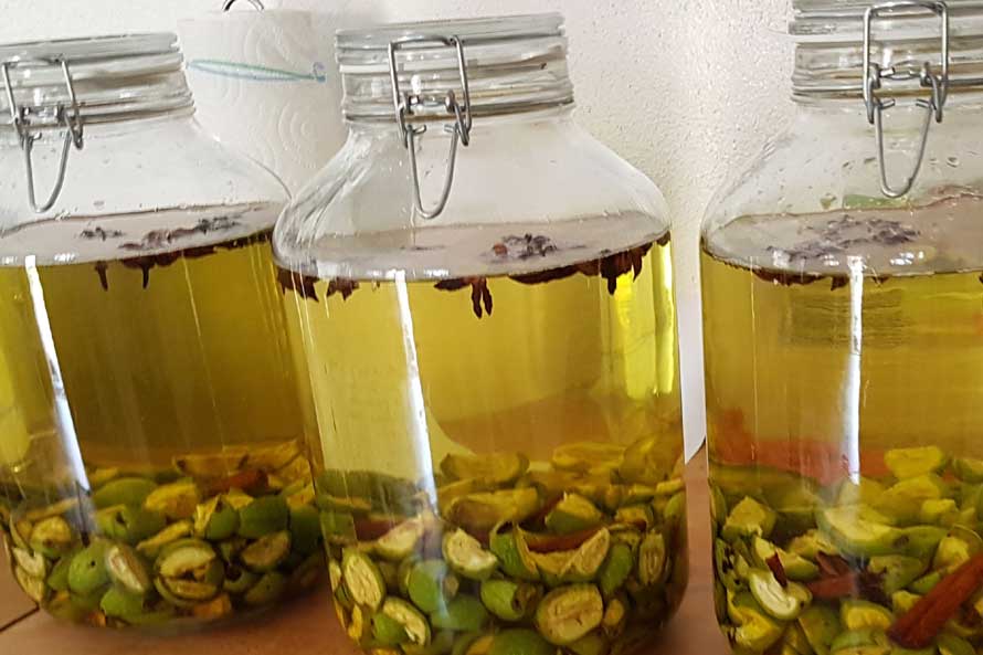 Neben grünen Walnüssen verarbeite ich Wachauer Marillen, Erdbeeren aus Wiesen sowie Pfirsiche, Zwetschken, Äpfel, Birnen und Kirschen der eigenen Obstbäume sowie Holunder, Lavendel, Melisse und andere Kräuter. Brot und Semmeln backe ich aus Bio Roggen- und Weizenmehl. Auch Urkorn-, Einkorn- und Waldstaudenmehl verarbeiten wir und experimetieren gerne in der häuslichen Backstube!